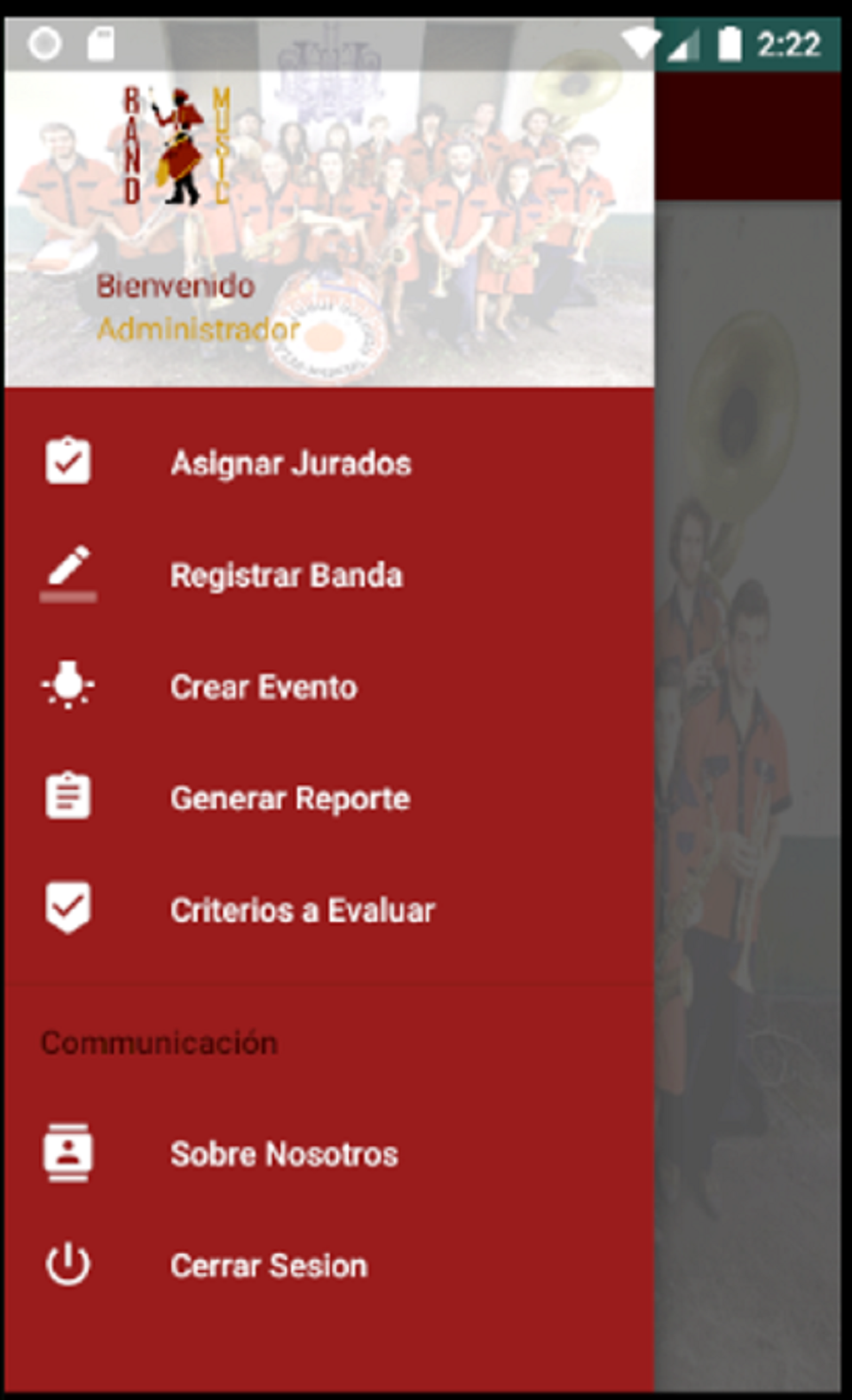 Es un aplicativo móvil, lo que hace el aplicativo básicamente es congregar los distintos eventos e información sobre bandas marciales y estudiantiles en un solo lugar, estando compuesto por tres modulos un administrador, jurados e invitados brindando una plataforma en la cual el evaluador ingresará con un usuario y contraseña asignada por un administrador,